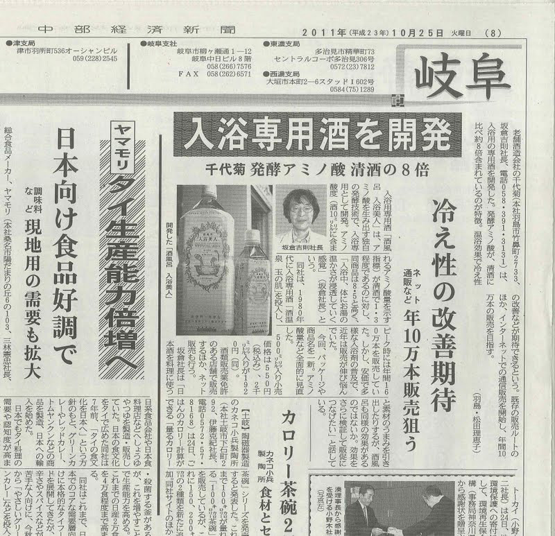 ◆【千代菊】中部経済新聞社にて 入浴美人が取り上げられました。